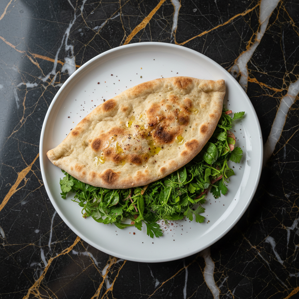 Zhingyalov Hats, a specialty from the Artsakh and Syunik regions of Armenia, is a flavorful flatbread generously stuffed with a vibrant mix of fresh herbs and greens. It's traditionally enjoyed during spring when wild herbs are abundant, but is delicious year-round.