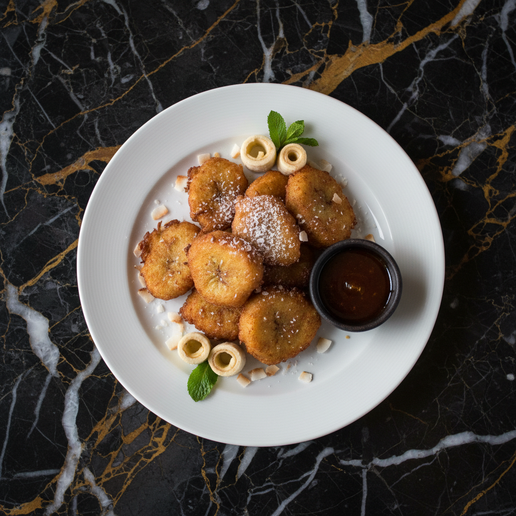 Sweet, crispy, and fluffy banana fritters, a popular snack or dessert in Comoros. Made with ripe bananas, flour, and a touch of sweetness, these fritters are a delightful taste of the islands.