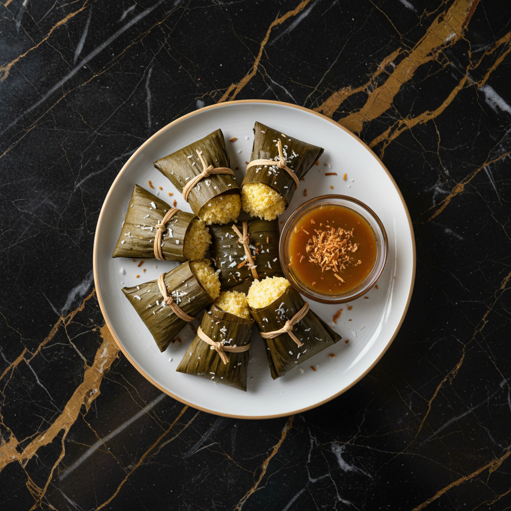 Steamed cornmeal fritters enriched with coconut milk, often sweetened and served as a dessert or a sweet snack. These are a delightful taste of traditional Puerto Rican home cooking.