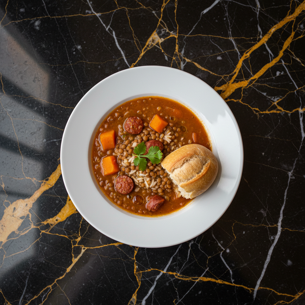 A comforting and nutritious Chilean lentil stew, often prepared with vegetables like pumpkin and carrots, and sometimes enriched with rice or a touch of longaniza. This hearty dish is a staple, especially during colder months.