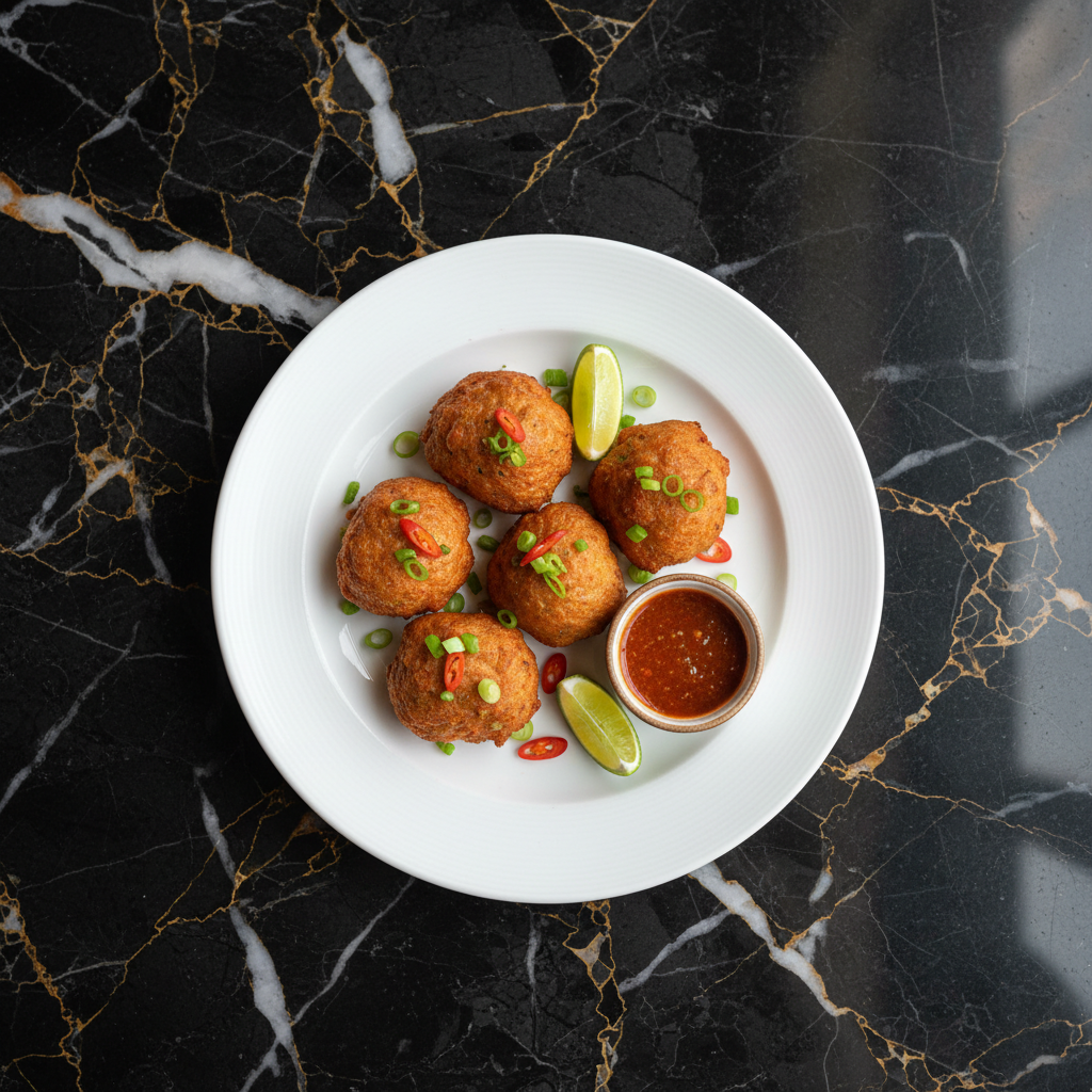 Crispy, savory fish balls, a popular Maldivian snack often enjoyed with tea. They are typically made with smoked tuna, onions, and spices, then deep-fried to a golden crisp.