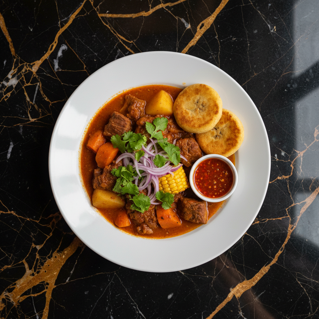 A hearty and flavorful tripe stew, considered a national dish in Ecuador. It's typically served with rice, avocado, and pickled red onions.