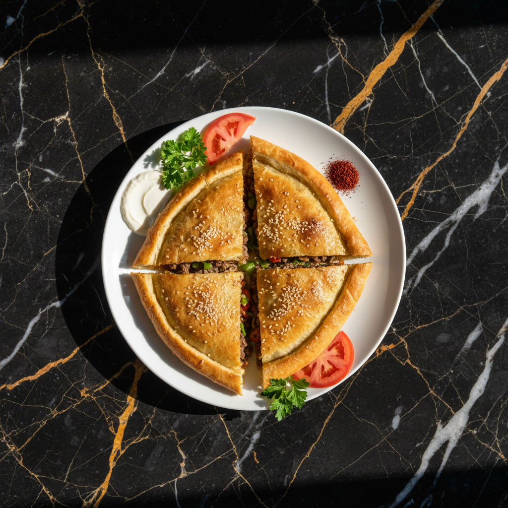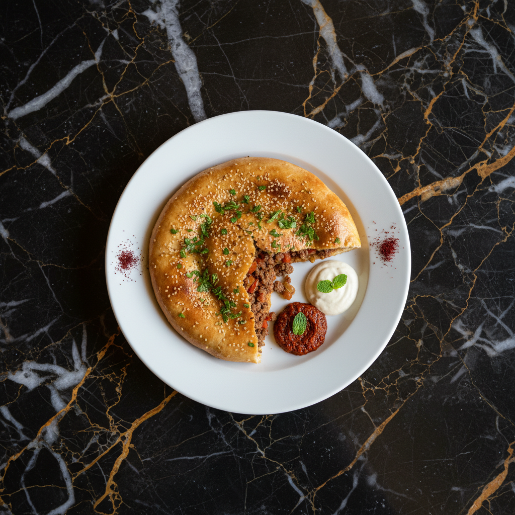 Hawawshi Baladi is a beloved Egyptian street food featuring a rustic pita bread stuffed with a flavorful, spiced ground meat mixture. It's a hearty and satisfying dish, perfect for a quick meal.