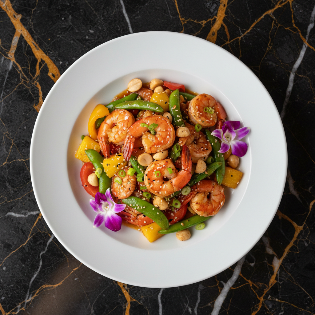 A vibrant and flavorful stir-fry that captures the essence of Hawaiian cuisine, combining succulent shrimp with the tropical crunch of macadamia nuts, sweet pineapple, and a savory-sweet sauce. This dish offers a delightful balance of textures and tastes.