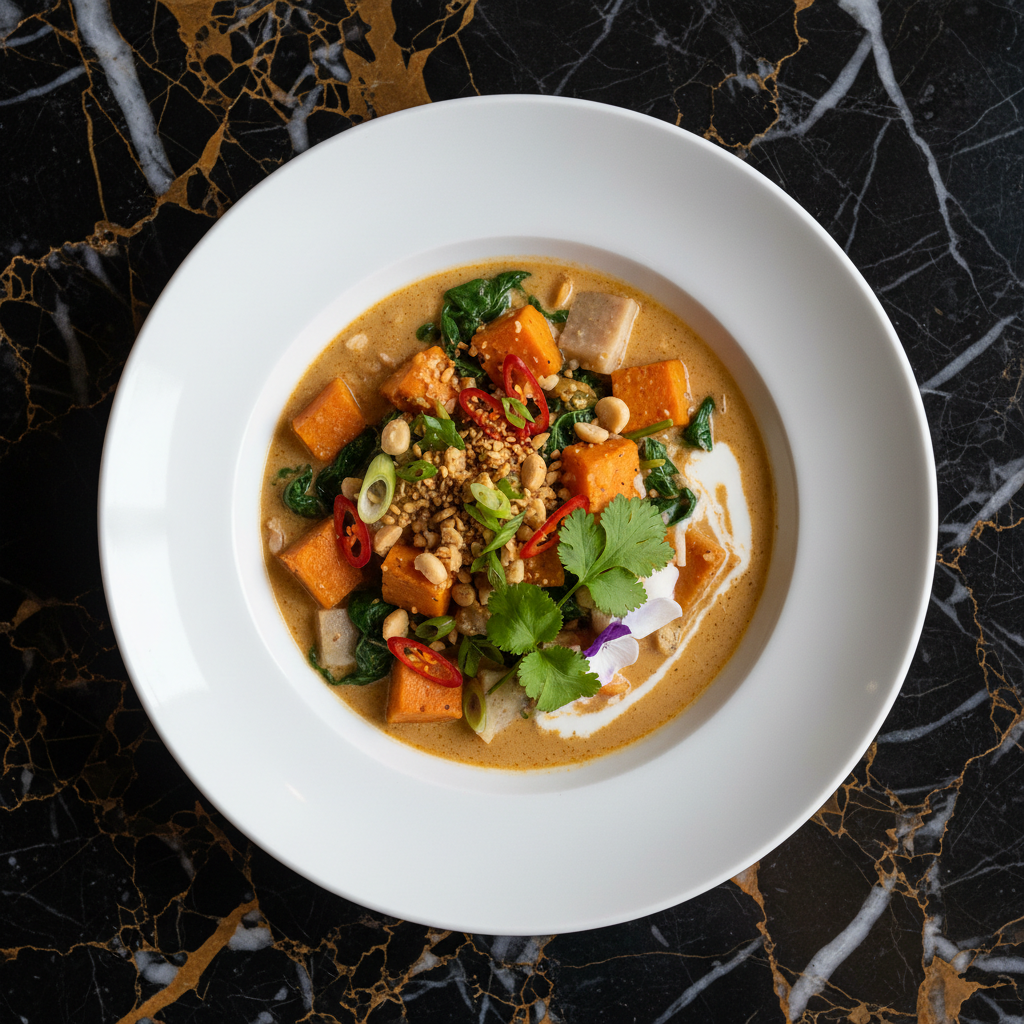 A comforting and flavorful stew featuring the natural sweetness of sweet potatoes simmered in creamy coconut milk, with warming spices.