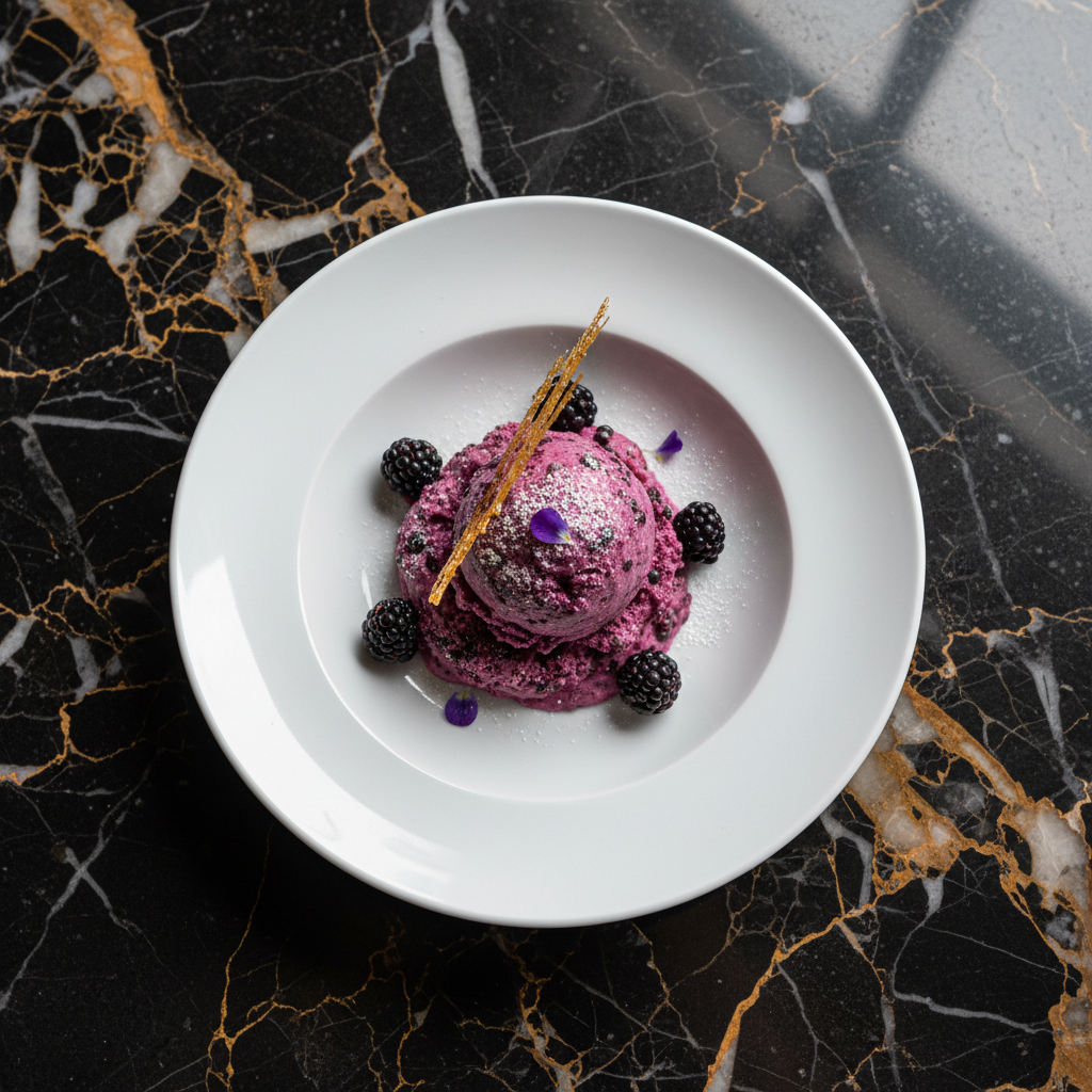 Helado de paila is a traditional Ecuadorian ice cream made using a copper basin (paila) set over ice and salt. This method creates a uniquely creamy texture. This version features the vibrant flavor of blackberries (mora).