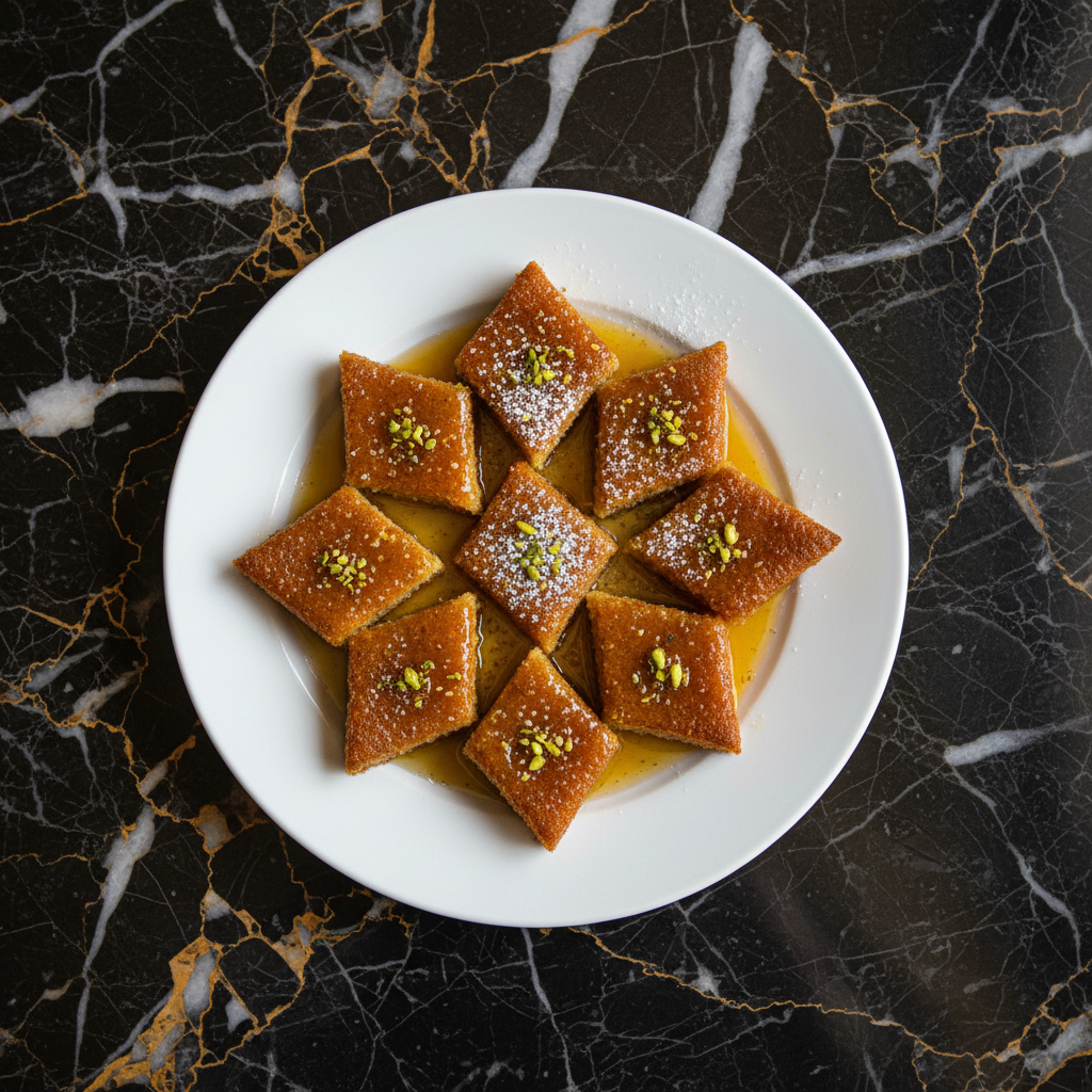 Helbeh is a traditional Jordanian cake made primarily from semolina and fenugreek seeds, often enjoyed for its unique flavor and purported health benefits, especially for nursing mothers. The cake is baked until golden and then soaked in a sweet syrup, creating a moist and aromatic treat. It's a popular dessert for special occasions and gatherings.