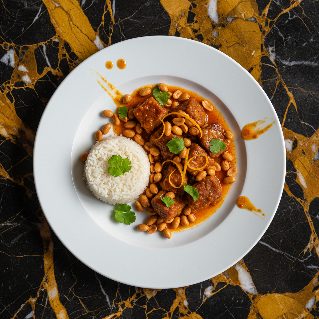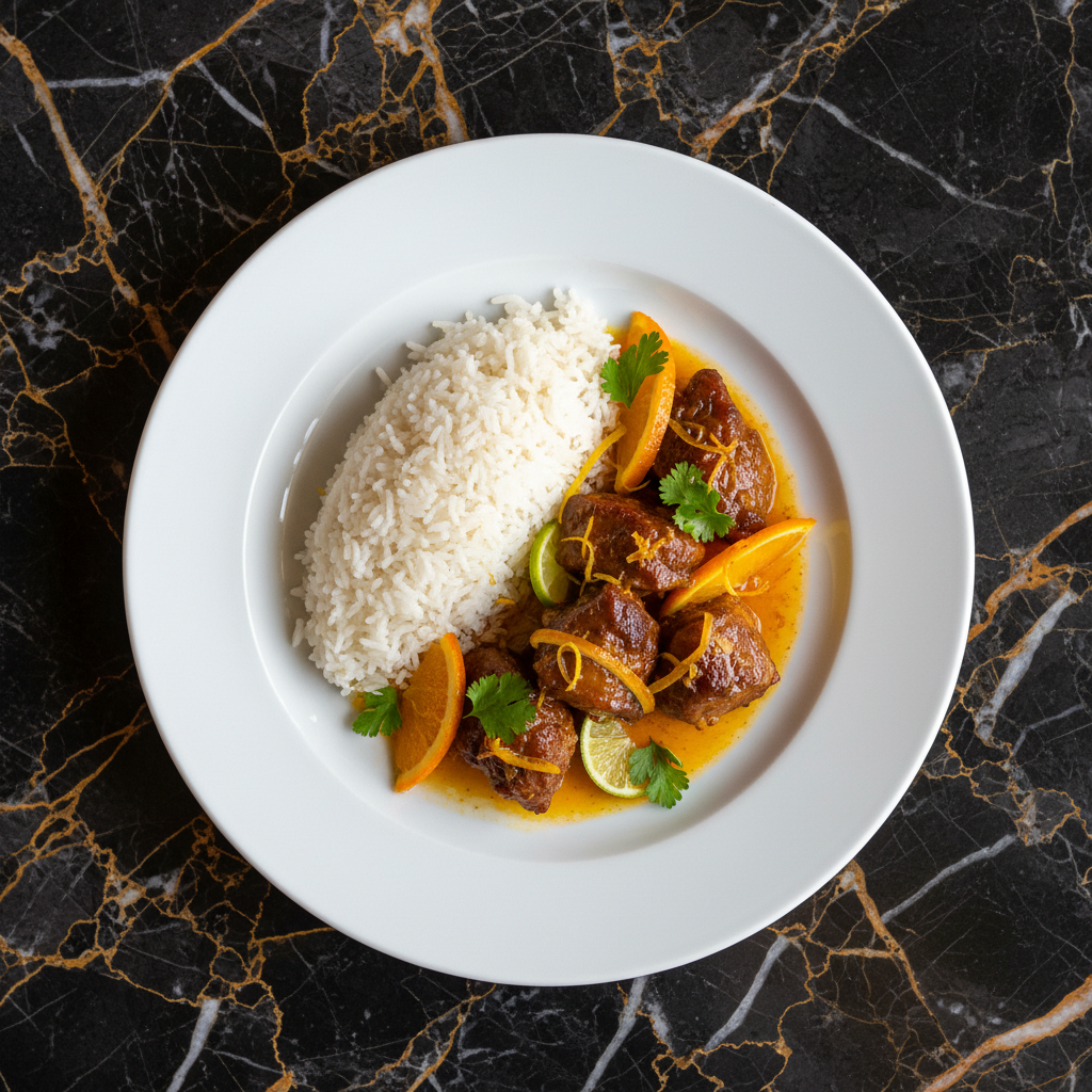 A flavorful and slightly sweet dish featuring tender pork simmered in a rich sauce infused with the zest and juice of oranges, complemented by the nutty crunch of peanuts. This recipe offers a unique twist on traditional Malagasy flavors, balancing savory, sweet, and tangy notes.