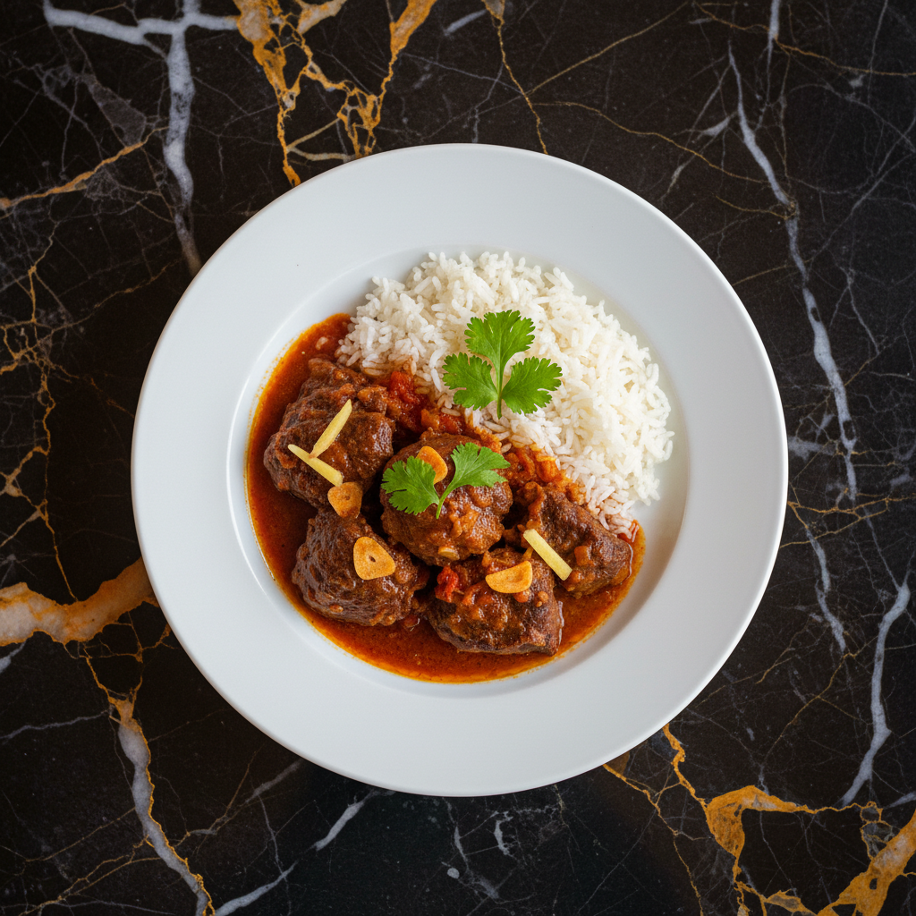 Hen'omby Ritra is a classic Malagasy dish of tender, slow-simmered beef, infused with the aromatic flavors of ginger, garlic, and tomato. It's a simple yet deeply satisfying stew, traditionally served with rice.