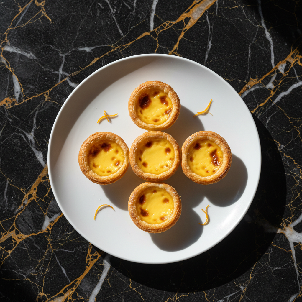 A delicate pastry tart with a crumbly, buttery crust filled with a smooth, sweet, and rich egg custard. Popular in dim sum and bakeries.