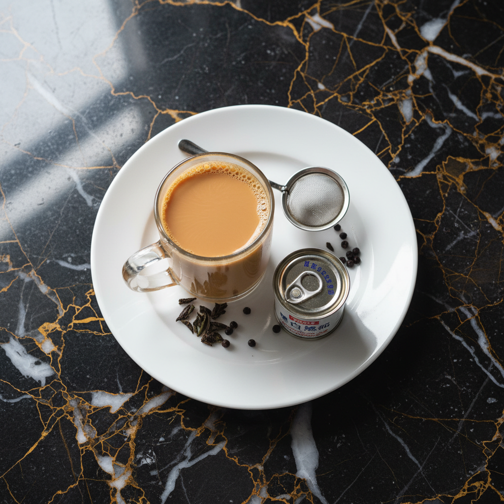 A rich and creamy black tea beverage, famous for its smooth texture and balanced sweetness, achieved through a unique brewing process and the use of evaporated or condensed milk.