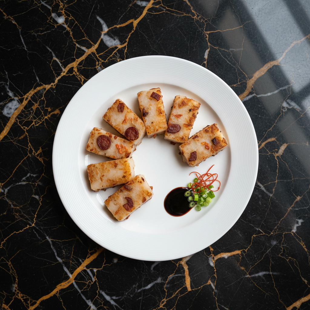 A savory and slightly sweet cake made from shredded daikon radish and rice flour, studded with ingredients like dried shrimp and Chinese sausage. It's typically steamed first and then pan-fried until golden brown and crispy, offering a delightful contrast in textures.