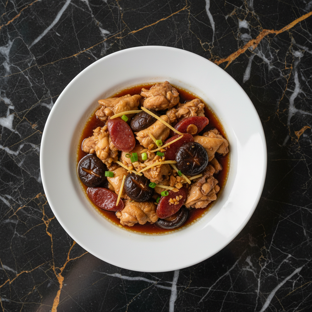 A comforting and classic Cantonese home-style dish, this steamed chicken with mushrooms is known for its tender, juicy chicken and savory, umami-rich gravy. The combination of chicken, rehydrated shiitake mushrooms, and often Chinese sausage, infused with aromatics like ginger and garlic, makes for a deeply flavorful and satisfying meal, typically served with rice.
