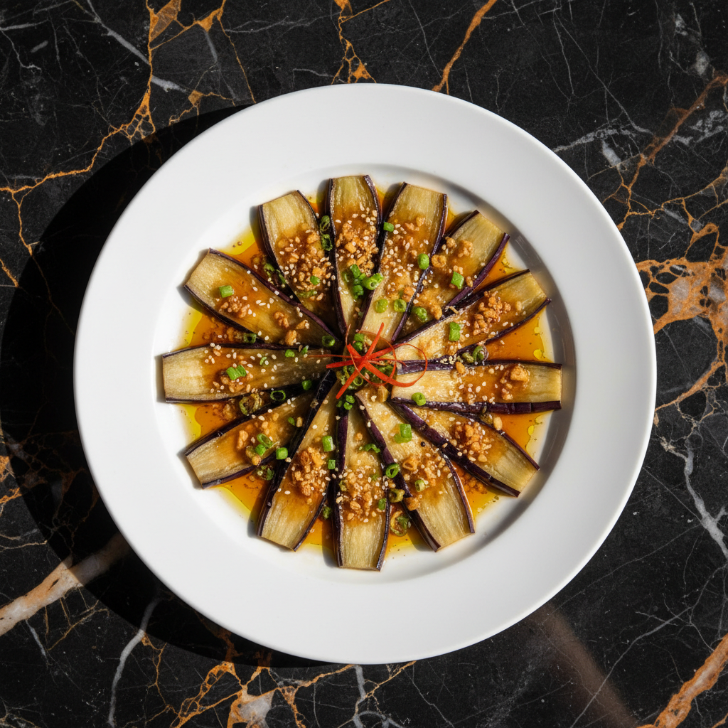 Tender, steamed Chinese eggplant is bathed in a savory and aromatic garlic sauce, creating a simple yet incredibly flavorful dish that highlights the natural sweetness of the eggplant.