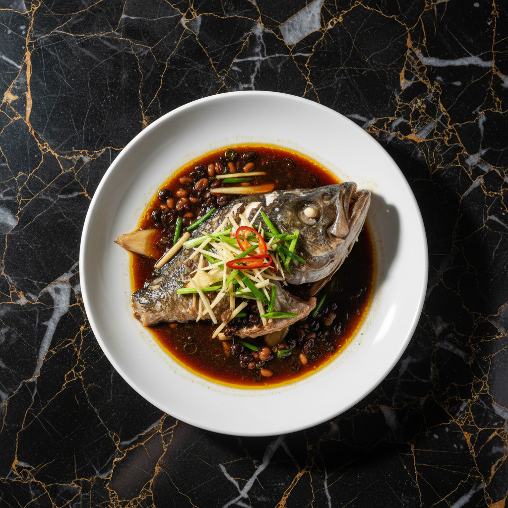 A classic Cantonese dish featuring a fish head steamed to perfection and generously topped with a pungent and savory fermented black bean sauce, ginger, and scallions.