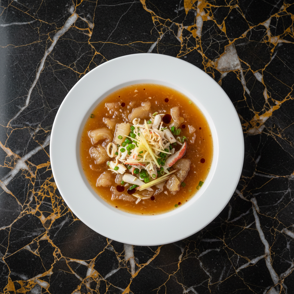 A luxurious and nourishing soup, fish maw soup is a delicacy in Cantonese cuisine, prized for its rich texture and perceived health benefits, particularly for skin and joints due to its collagen content. This version is often enhanced with other premium ingredients like dried scallops and crab meat.