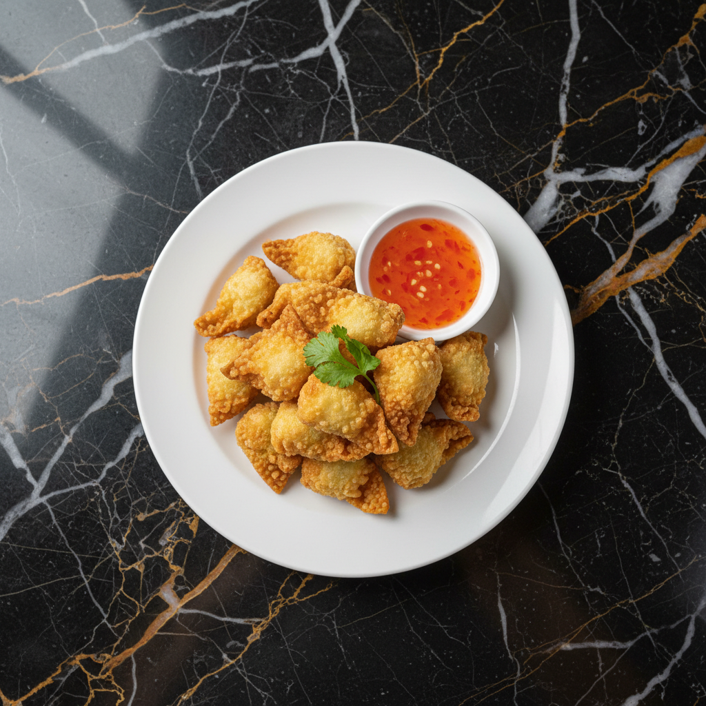 Crispy, golden-brown fried wontons filled with a savory mixture of pork and shrimp. A popular dim sum item and snack, often served with a sweet chili sauce.
