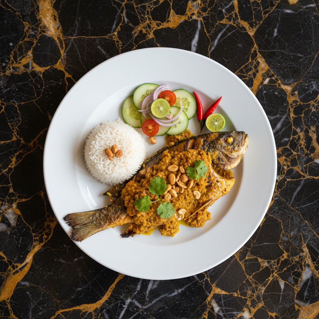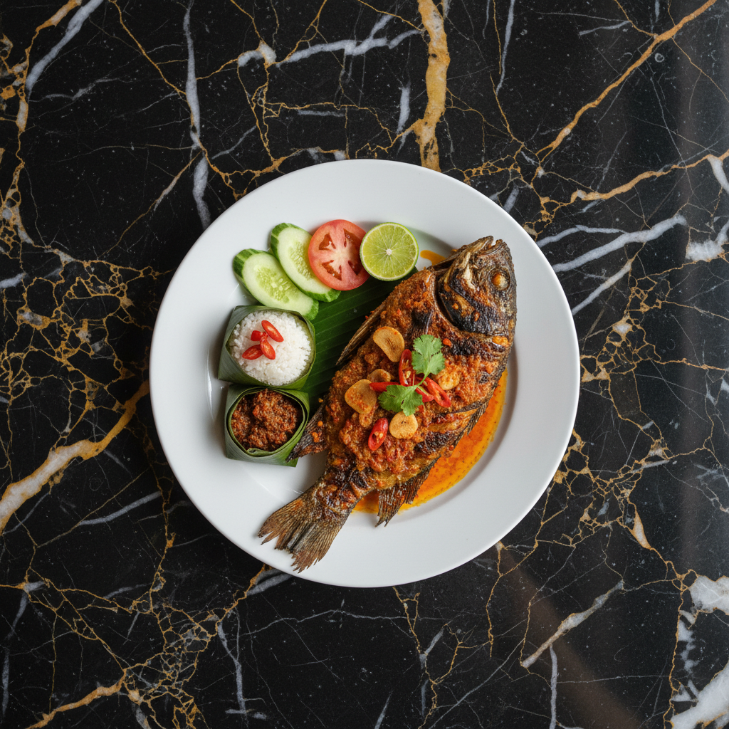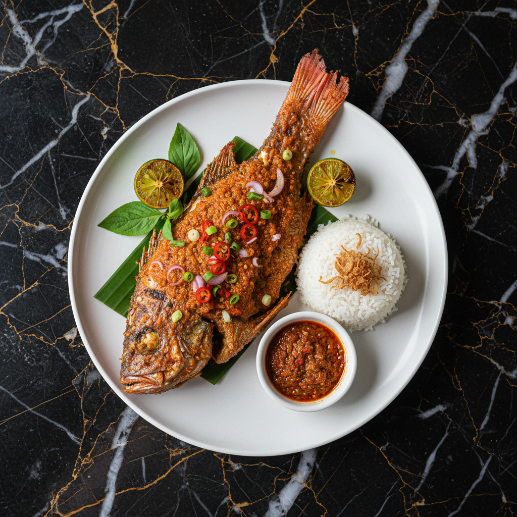 A classic Indonesian dish featuring a whole fish marinated in a sweet and savory glaze, then grilled to perfection. Often served with a fiery sambal and fresh vegetables, it's a staple in Indonesian seafood restaurants.