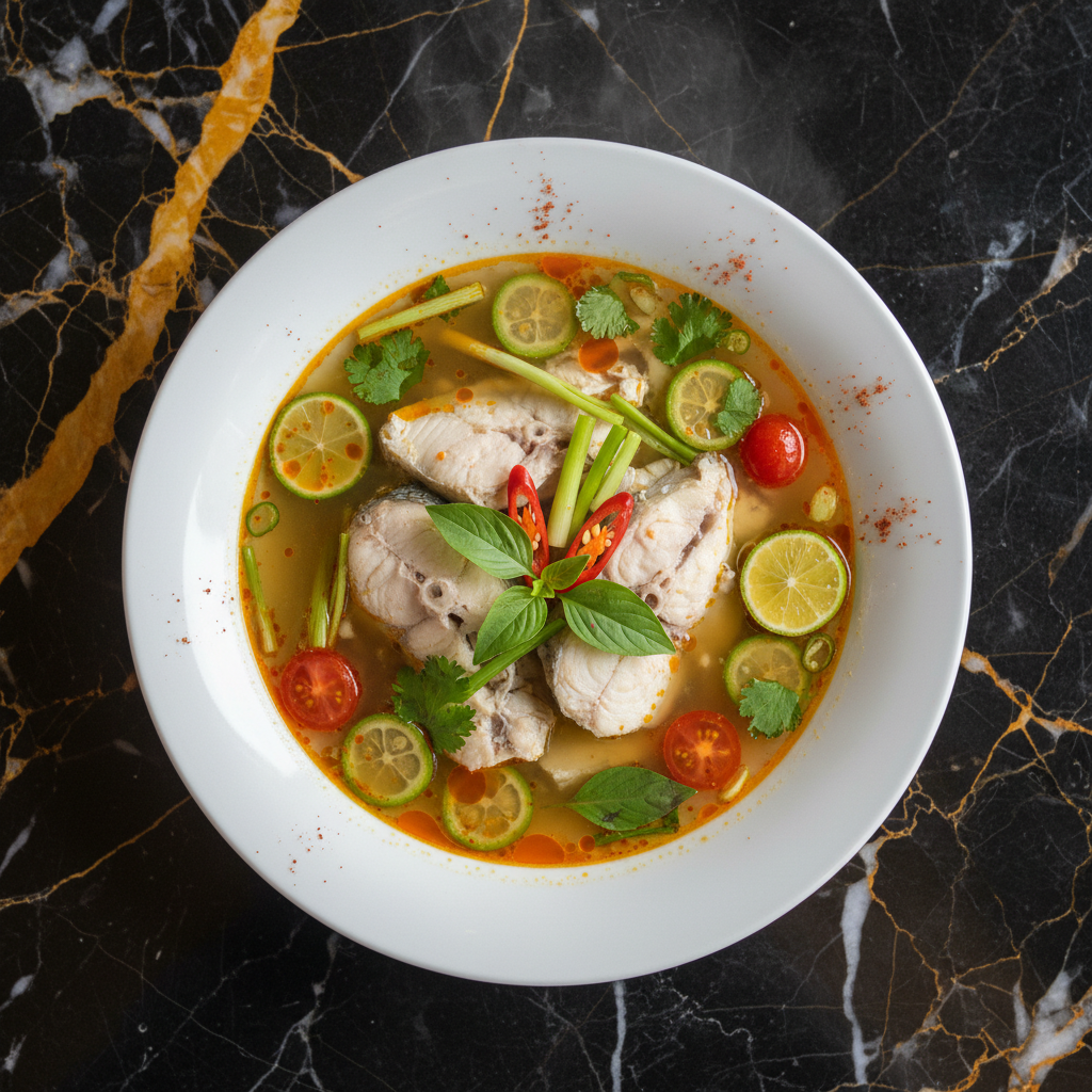 A vibrant and tangy fish soup from Manado, North Sulawesi. This dish features fresh fish cooked in a clear, sour broth infused with a generous amount of tamarind, tomatoes, and local herbs like kemangi (basil). It's known for its refreshing and zesty flavor, perfect for a tropical climate.