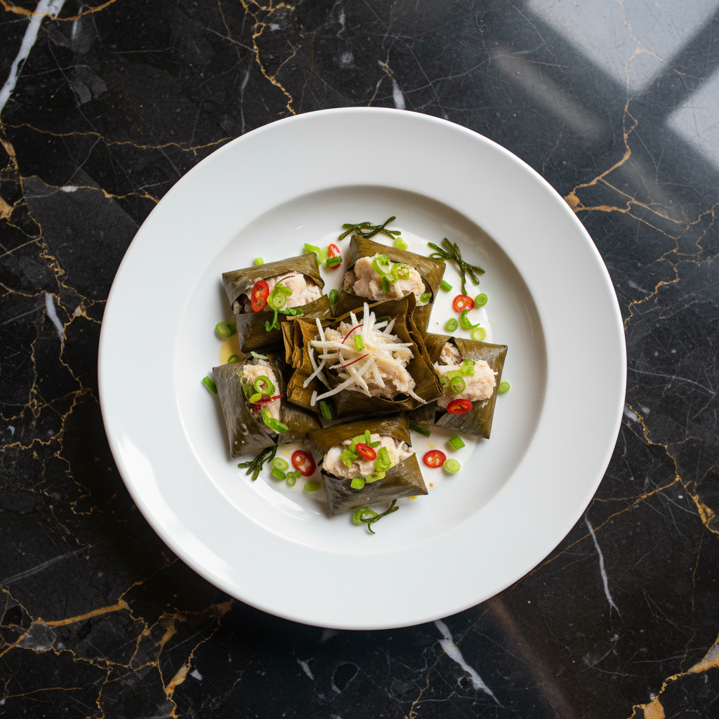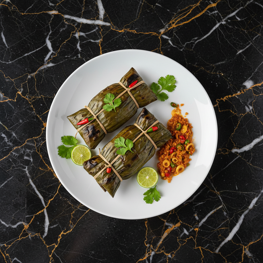 A traditional dish from Timor-Leste where whole fish are marinated in a flavorful spice paste, wrapped in banana leaves, and then steamed and grilled. The result is a tender, aromatic fish infused with the flavors of the spices and banana leaf.