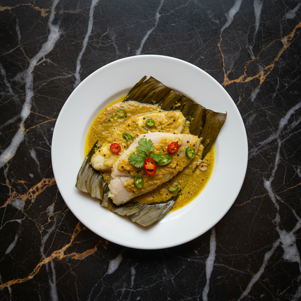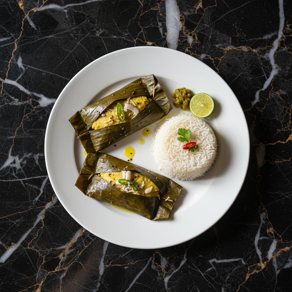 A classic Bengali delicacy where Hilsa fish (Ilish) is marinated in a paste of mustard, coconut, and spices, then wrapped in banana leaves and steamed to perfection. The steaming process infuses the fish with aromatic flavors and keeps it incredibly moist.