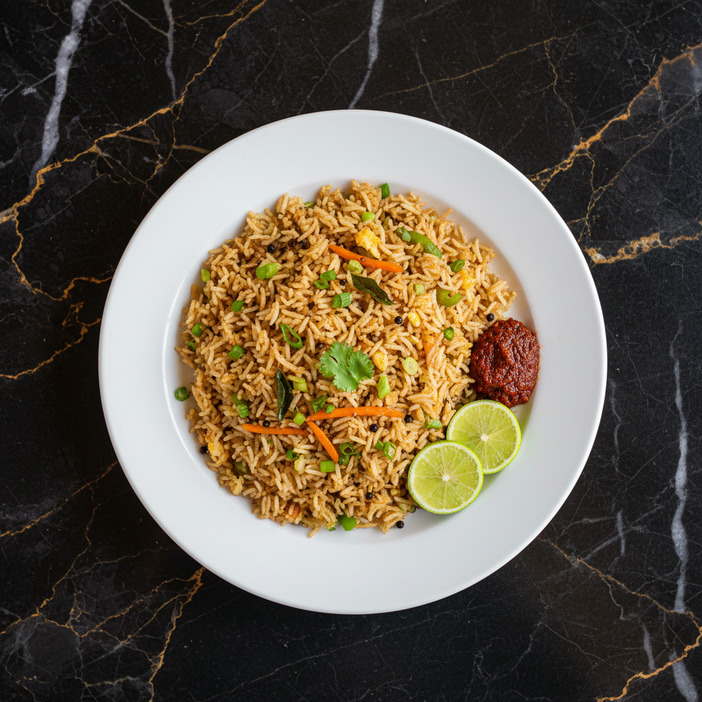 A quick and flavorful Indo-Chinese fried rice, featuring fluffy rice stir-fried with crisp vegetables, scrambled eggs, and a savory soy-vinegar sauce. Perfect as a standalone meal or a delicious accompaniment to Manchurian dishes.