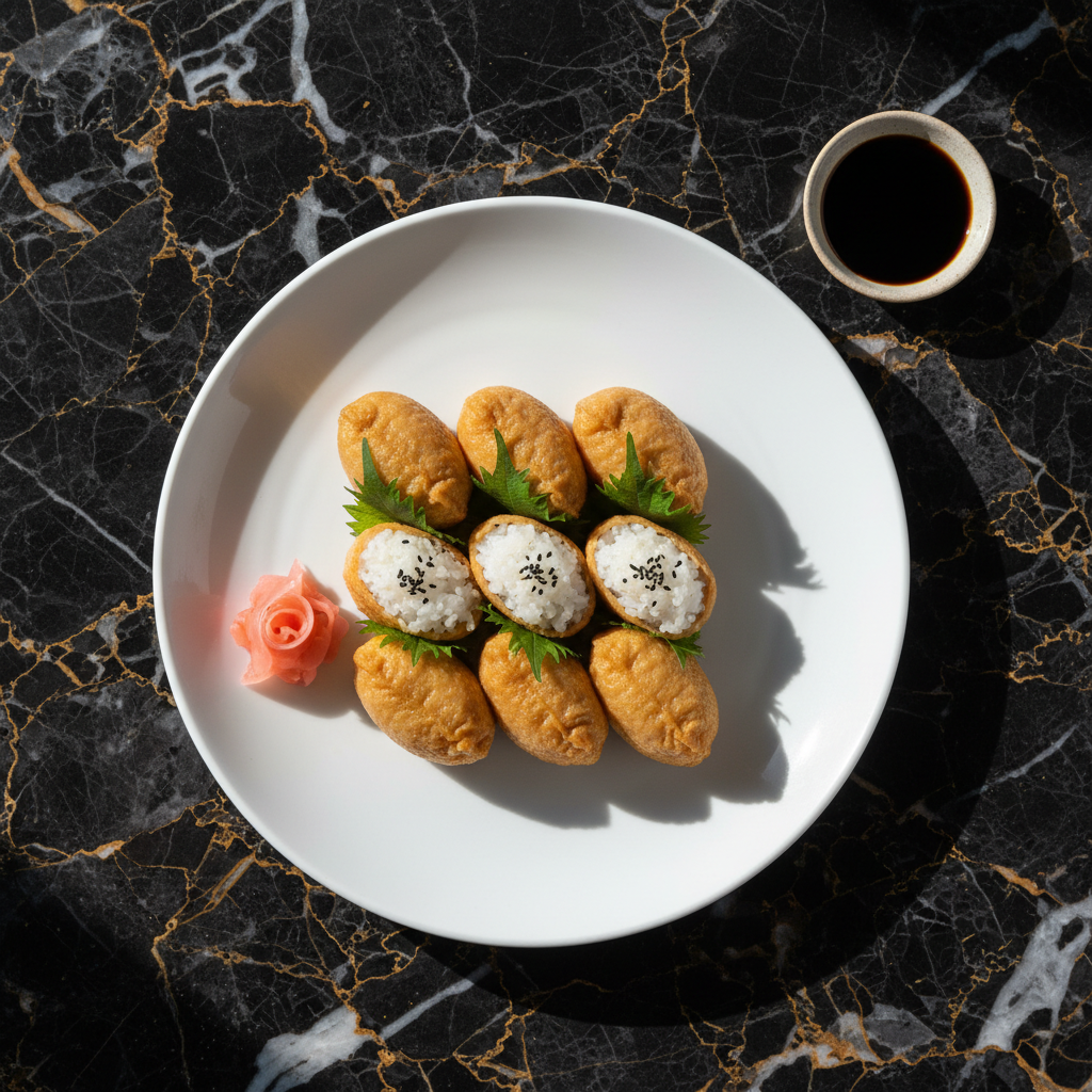 Sweet and savory fried tofu pockets (aburaage) stuffed with seasoned sushi rice. A beloved staple for festivals, bento boxes, and casual dining.