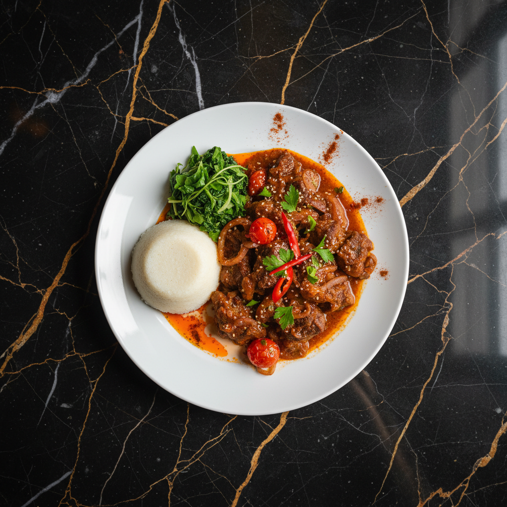 A hearty and aromatic slow-cooked beef stew, infused with tomatoes, onions, garlic, and local spices. This dish embodies Rwandan hospitality and is often prepared for festive occasions or to welcome guests.