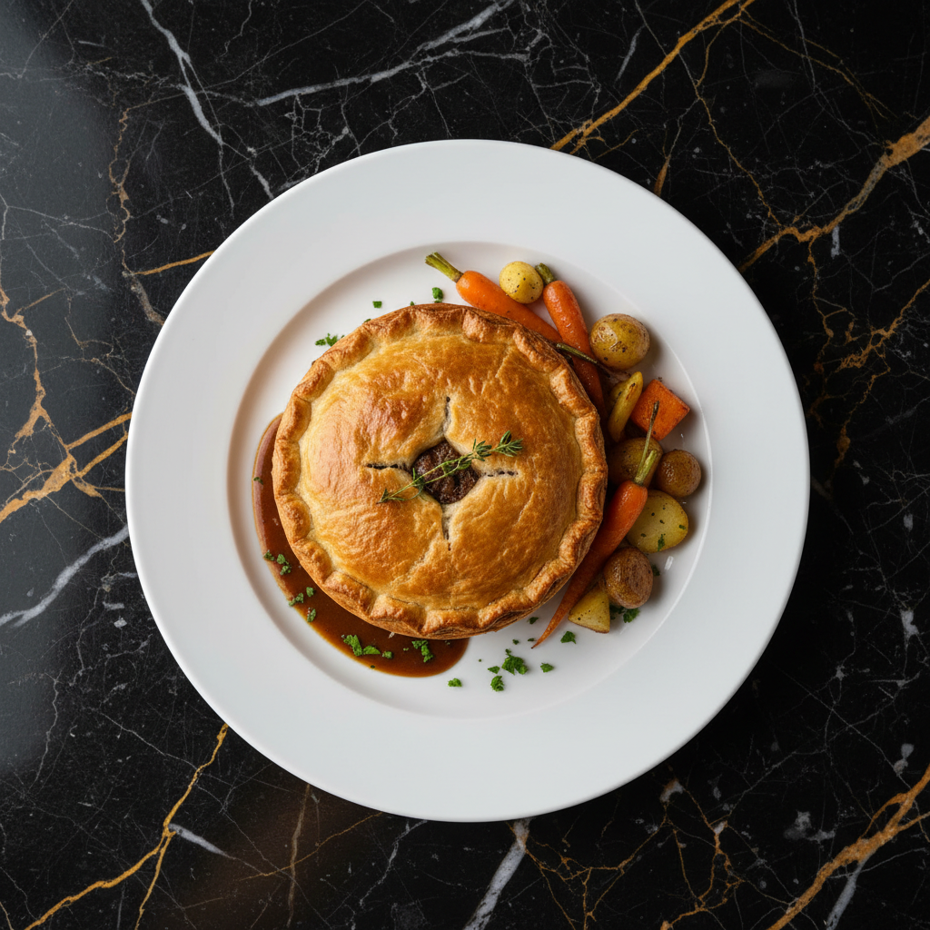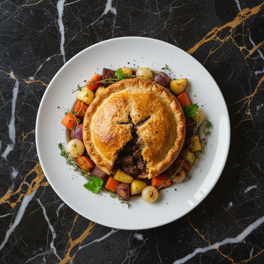 A hearty and flavorful pie featuring tender chunks of beef slow-cooked in rich Irish ale with a medley of root vegetables, all encased in a flaky pastry crust.