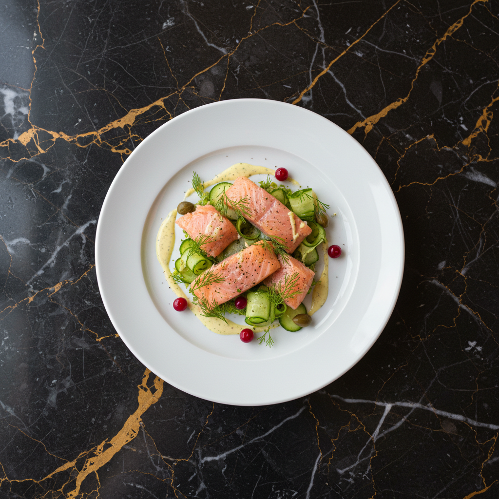 A classic Swedish dish of salmon gently poached in a flavorful court bouillon. This method results in incredibly tender and moist fish, perfect served either warm or cold. It's an elegant yet simple dish, ideal for summer gatherings.