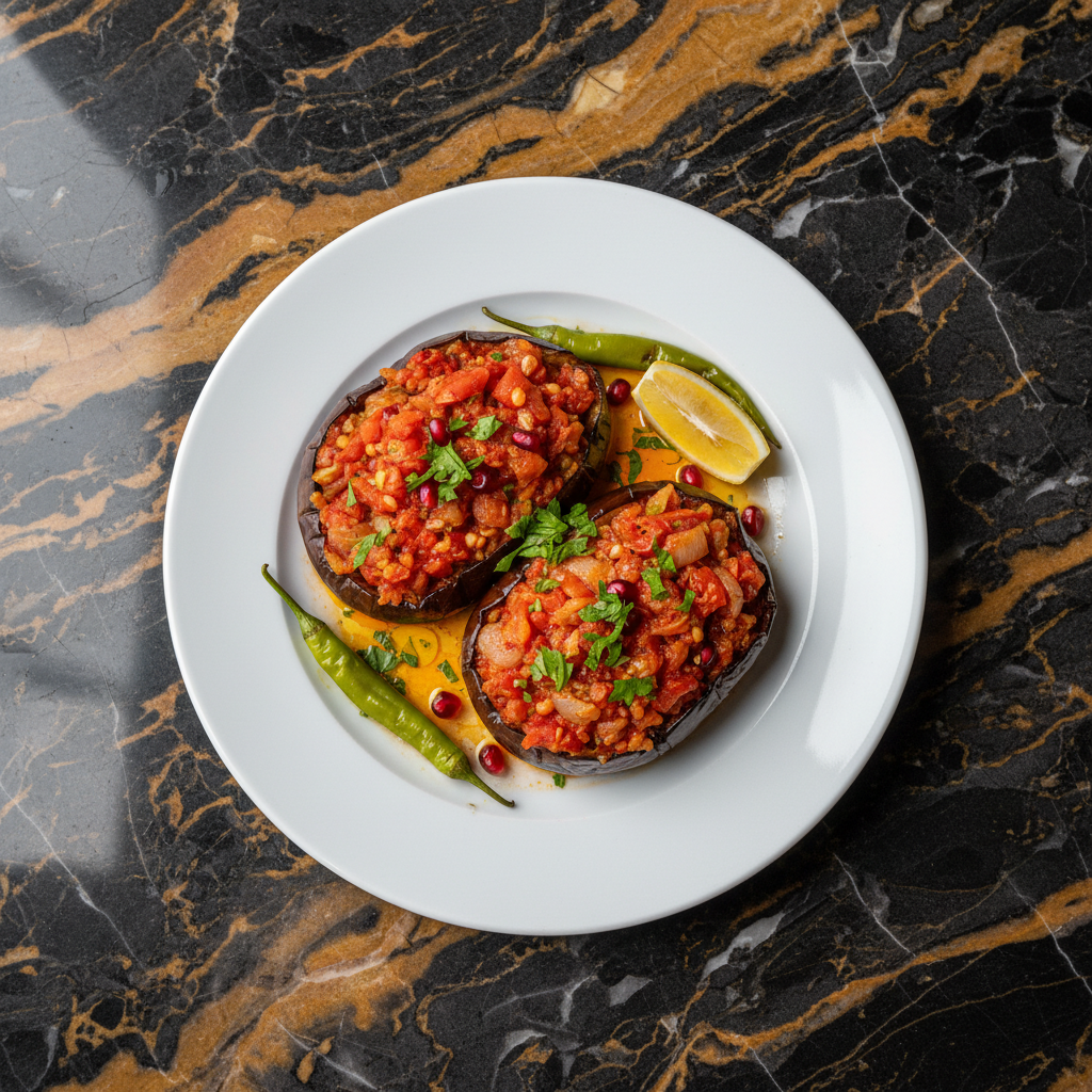 A classic Turkish dish of eggplants stuffed with a savory mixture of onions, tomatoes, and garlic, then slow-braised in abundant olive oil until meltingly tender. The name, 'The Imam Fainted,' is said to refer to the dish's rich flavor, the amount of olive oil used, or perhaps its perceived expense.