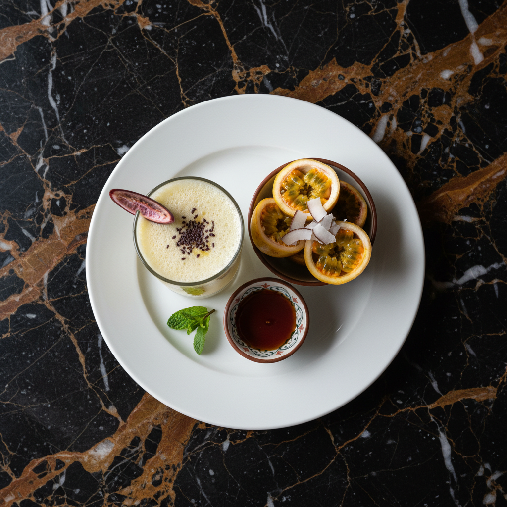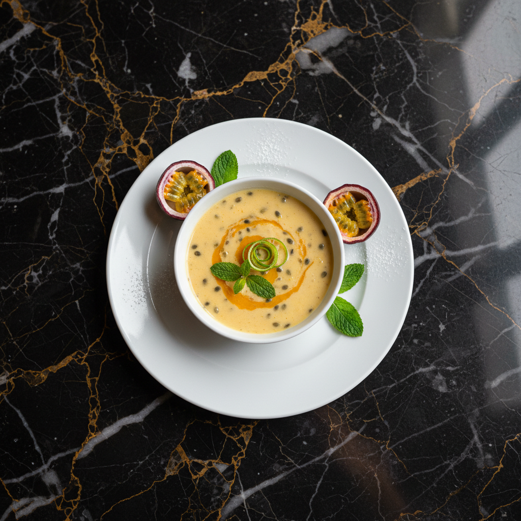 A vibrant and refreshing Colombian passion fruit juice, known for its delightful tartness balanced with sweetness. Perfect for a hot day or as a tropical treat.