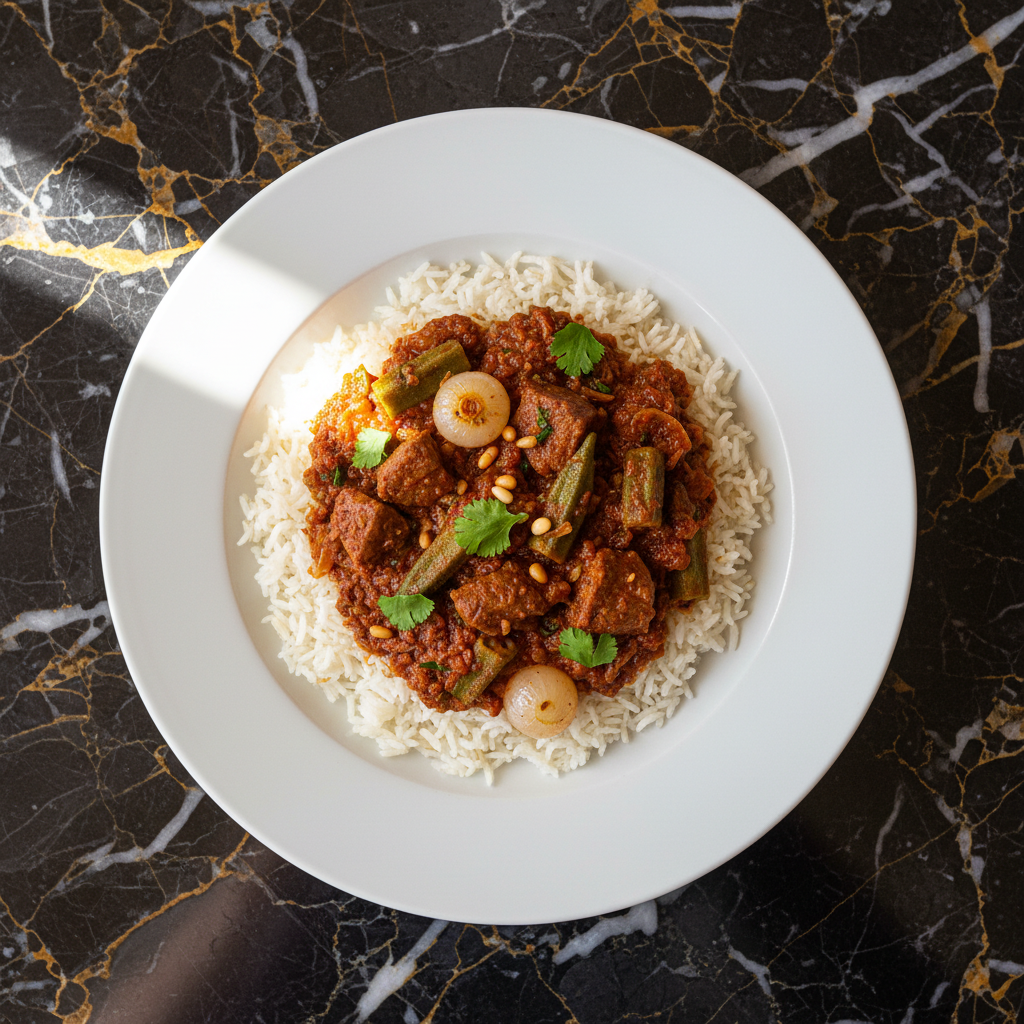 A hearty and flavorful okra stew, known as Bamia in Jordan, simmered with tender meat in a rich tomato-based sauce. This comforting dish is a staple in Jordanian households and is traditionally served over fluffy rice.