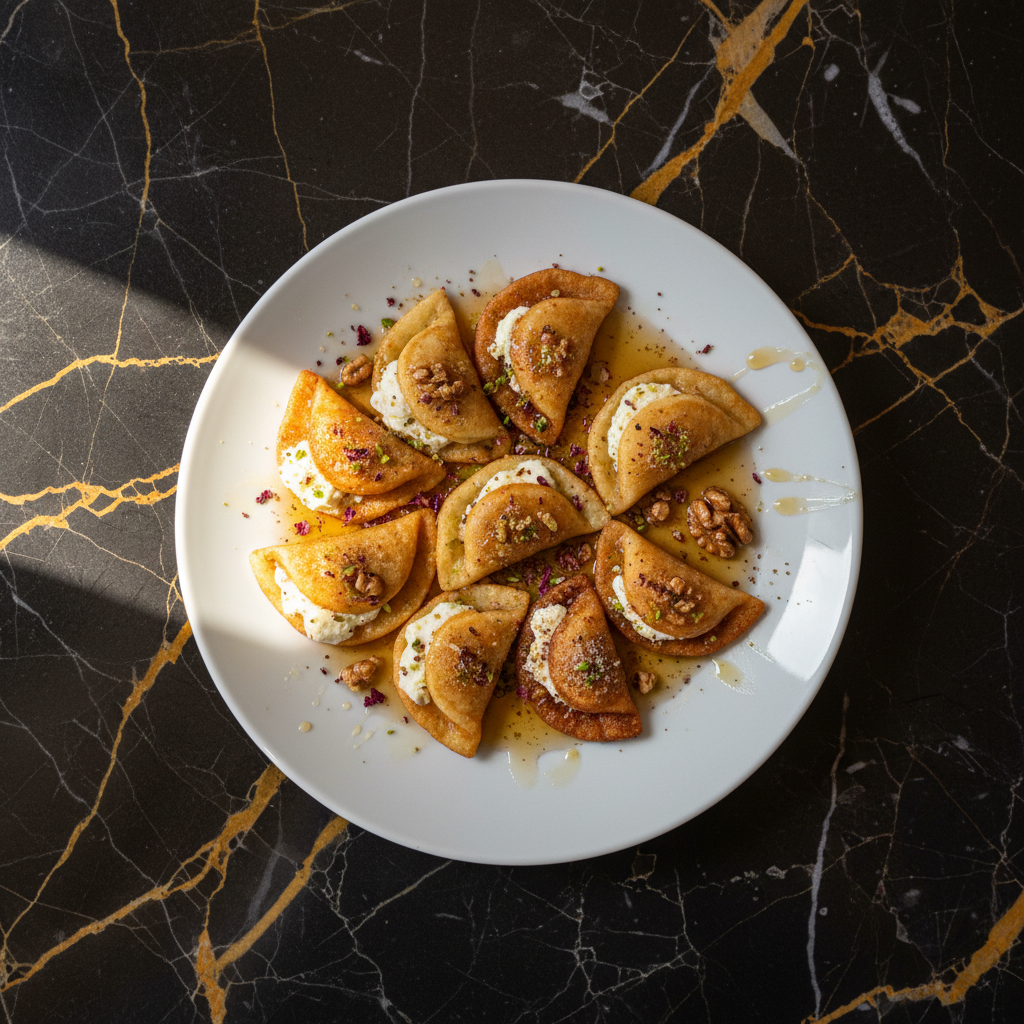 Qatayef are small, sweet pancakes, cooked on one side to create a lacy texture. They are typically filled with either a sweet cheese or a spiced walnut mixture, folded into a crescent, and then fried or baked until golden and crispy. They are then drenched in a fragrant sugar syrup.