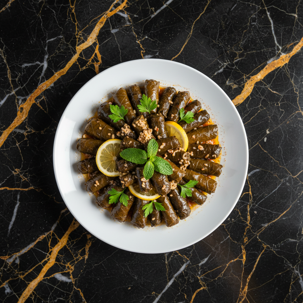 Tender grape leaves filled with a flavorful mixture of rice, herbs, and sometimes minced meat, then slow-cooked in a tangy lemon and olive oil broth.