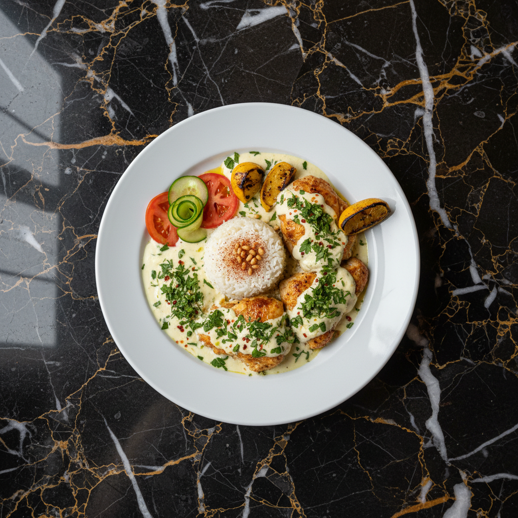 Tender chicken breasts marinated in a tangy yogurt sauce infused with fresh herbs, garlic, and spices, then baked to perfection. This dish is a flavorful and healthy option, often served with rice or a fresh salad.