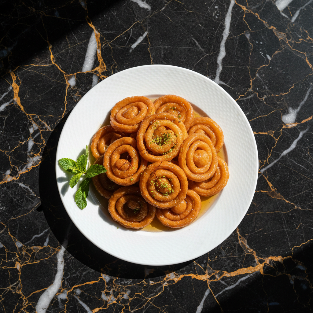 Zalabia are a sweet, crispy fried dough pastry, often shaped into irregular swirls or balls, and then drenched in a fragrant syrup. They are a popular dessert throughout the Middle East and are especially enjoyed during festive occasions like Ramadan and Hanukkah.