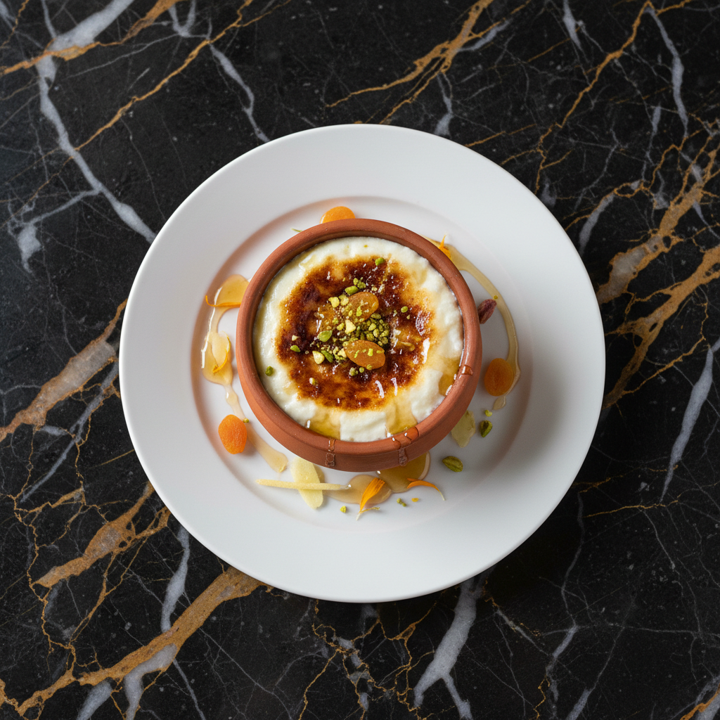 A creamy and comforting Middle Eastern rice pudding, delicately flavored with rose water and orange blossom water. This classic dessert is simple to make and a delightful end to any meal.