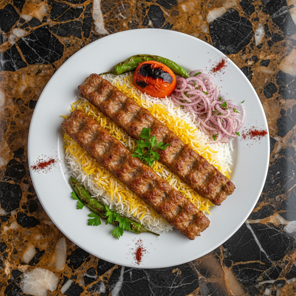 Kabab Koobideh is the quintessential Persian ground meat kebab, renowned for its incredibly juicy and flavorful texture. Typically made with lamb, this dish is considered the king of Persian kebabs, best enjoyed grilled and served with traditional accompaniments.