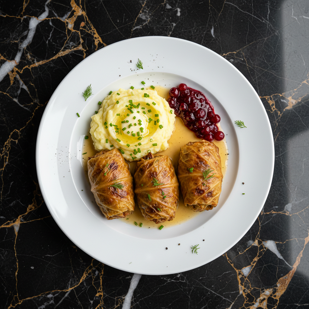 Kaalikรครคryleet are tender cabbage leaves wrapped around a savory filling of minced meat (often a mix of beef and pork) and rice, then baked until tender and flavorful. They are a comforting and traditional Finnish dish, often served with lingonberry jam and mashed potatoes.