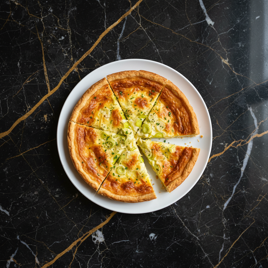 A savory tart featuring a flaky pastry crust filled with tender leeks and a blend of melted cheeses, often including Gouda. This tart is a delightful appetizer or a light main course.
