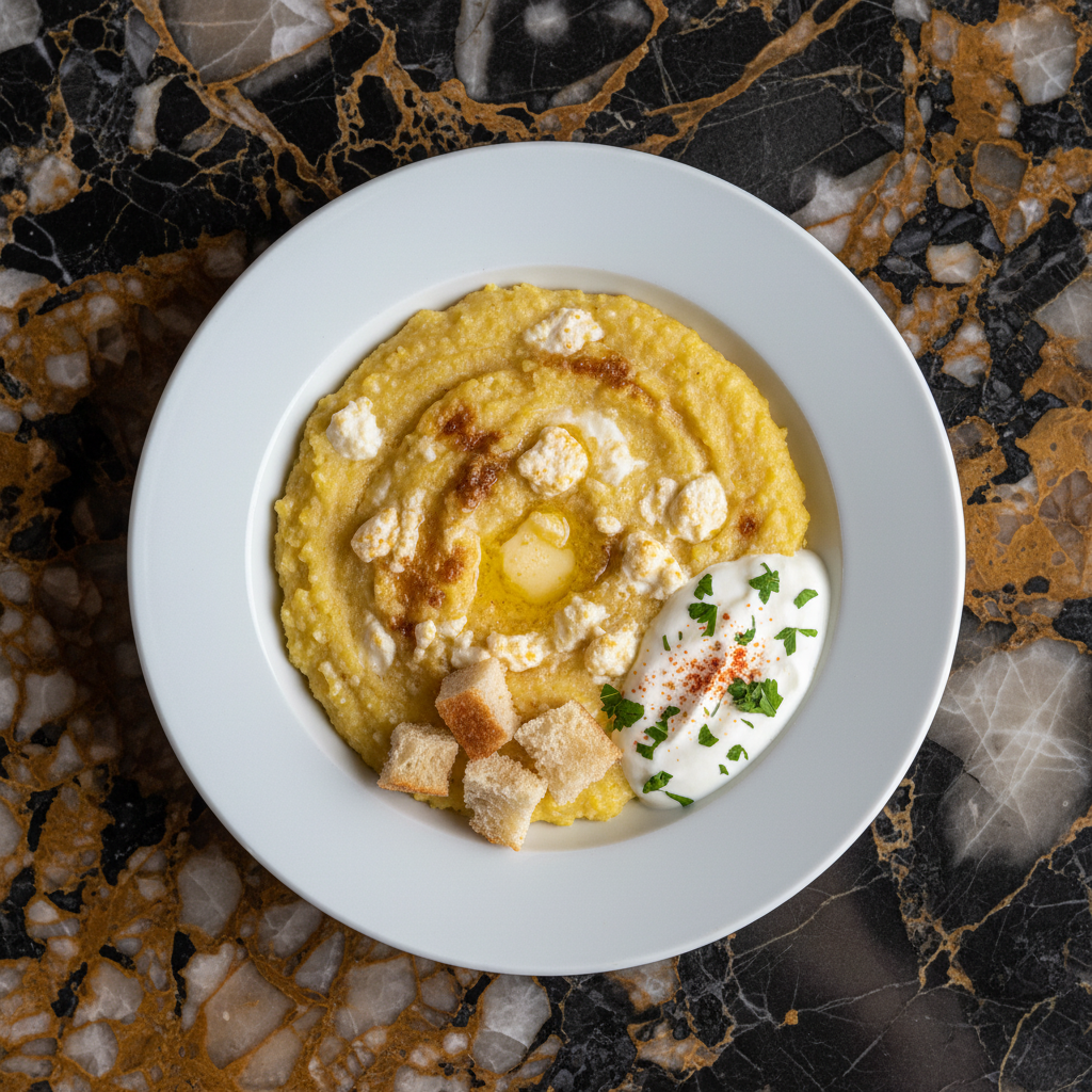 A rustic and hearty cornmeal porridge, a staple in Montenegrin cuisine, typically served with cheese and sometimes kajmak or butter.