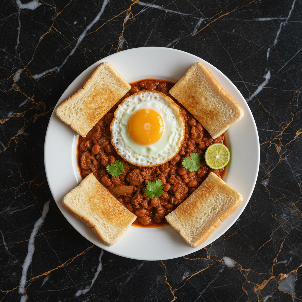 Kacang Pool is a hearty and flavorful dish originating from the Middle East, adapted into a popular Malaysian breakfast staple. It features fava beans (or baked beans) simmered in a rich, spiced gravy with minced beef, onions, garlic, and ginger. Typically served with a fried egg on top, it's a satisfying and comforting meal, often accompanied by toasted bread for dipping.