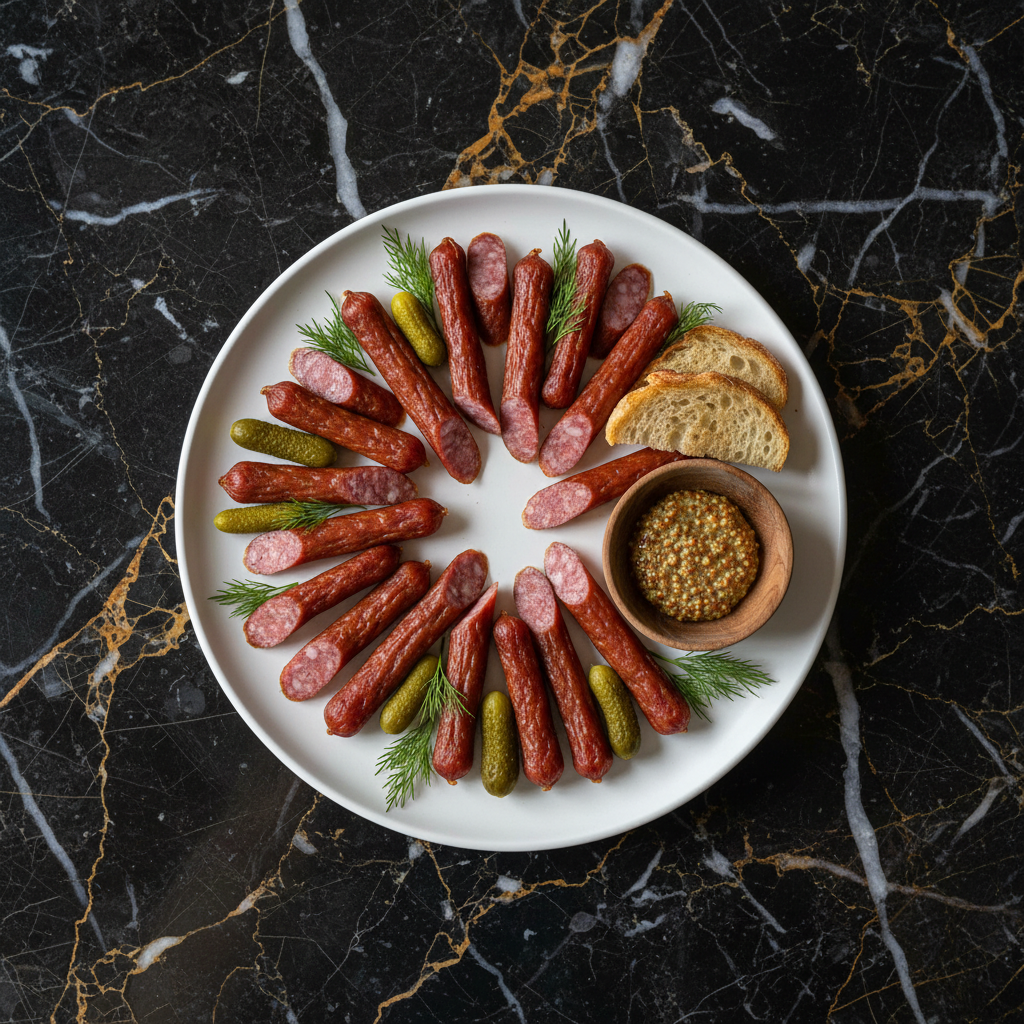 Authentic Polish Kabanosy, a thin, smoky, and dry-cured pork sausage perfect as a snack, especially for hiking. This recipe requires specialized equipment and patience for curing and smoking.