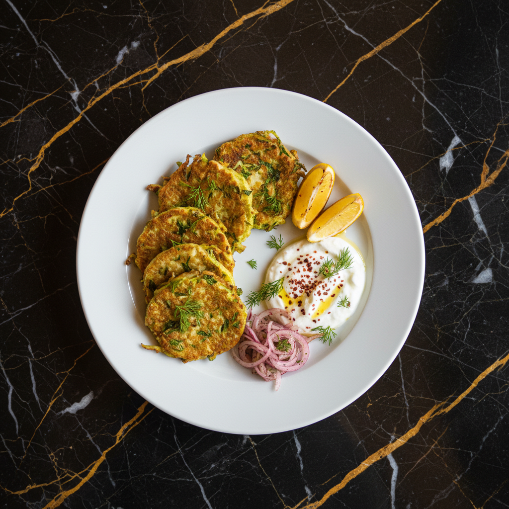 Crispy, herb-flecked zucchini fritters, a quintessential summer mezze dish. These savory cakes are light yet satisfying, perfect as an appetizer or a light meal.