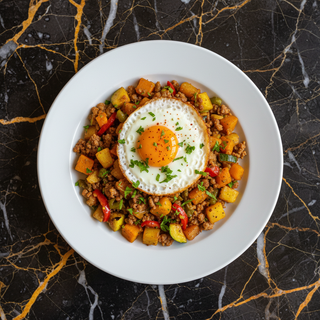 A popular Tunisian street food, Kafteji is a flavorful and hearty dish made with a base of fried vegetables (potatoes, zucchini, pumpkin, bell peppers) mixed with minced meat (usually beef or lamb) and spices, then topped with a fried egg.
