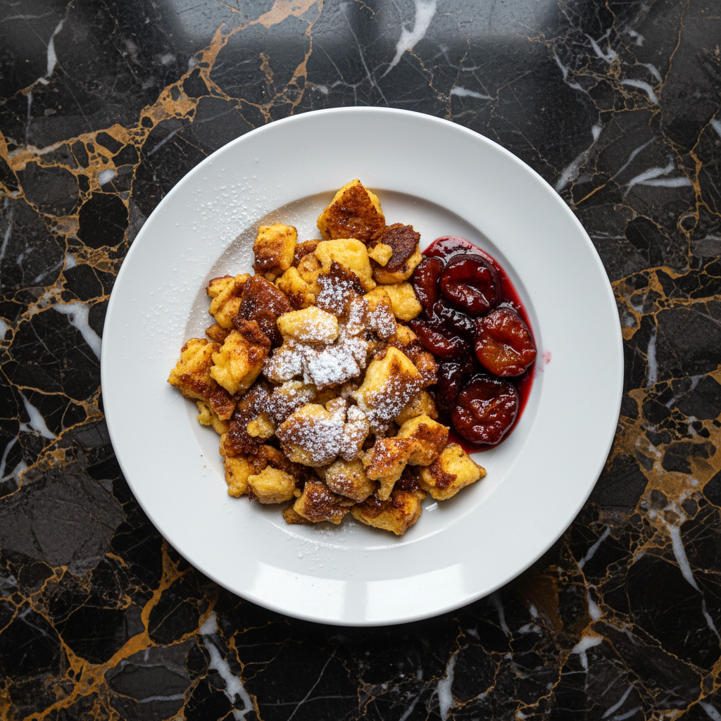 A beloved Austrian dessert, Kaiserschmarrn, translates to 'Emperor's Mess' or 'Emperor's Pancake'. It's a light, fluffy, and slightly sweet shredded pancake, caramelized to golden perfection and often served with a side of warm plum compote (Zwetschgenrรถster). A truly imperial indulgence.