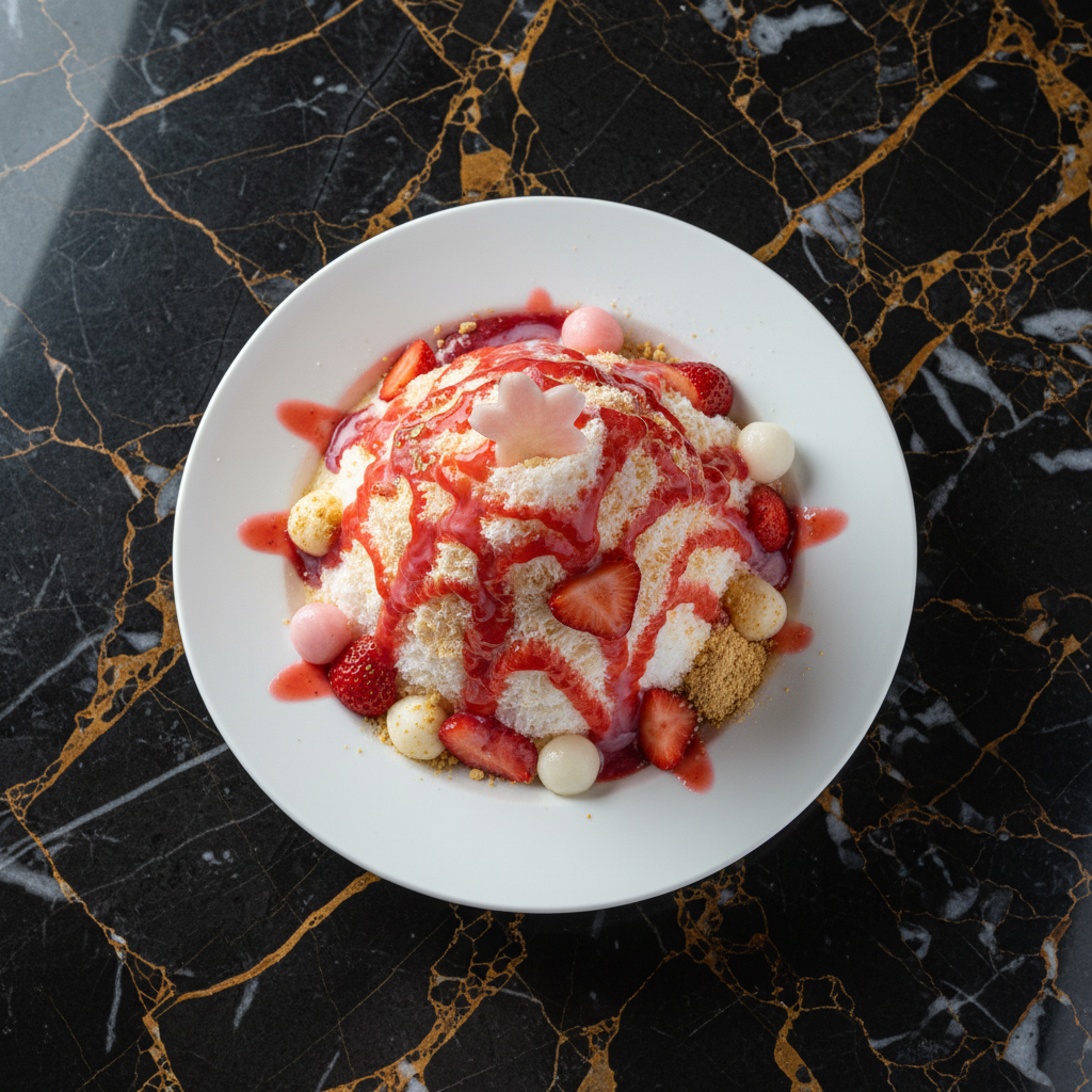 A beloved Japanese summer festival treat, Kakigori is a mountain of impossibly fine, fluffy shaved ice, drenched in sweet, vibrant syrup and optionally adorned with condensed milk and fresh fruit. It's a refreshing and delightful dessert perfect for hot days.