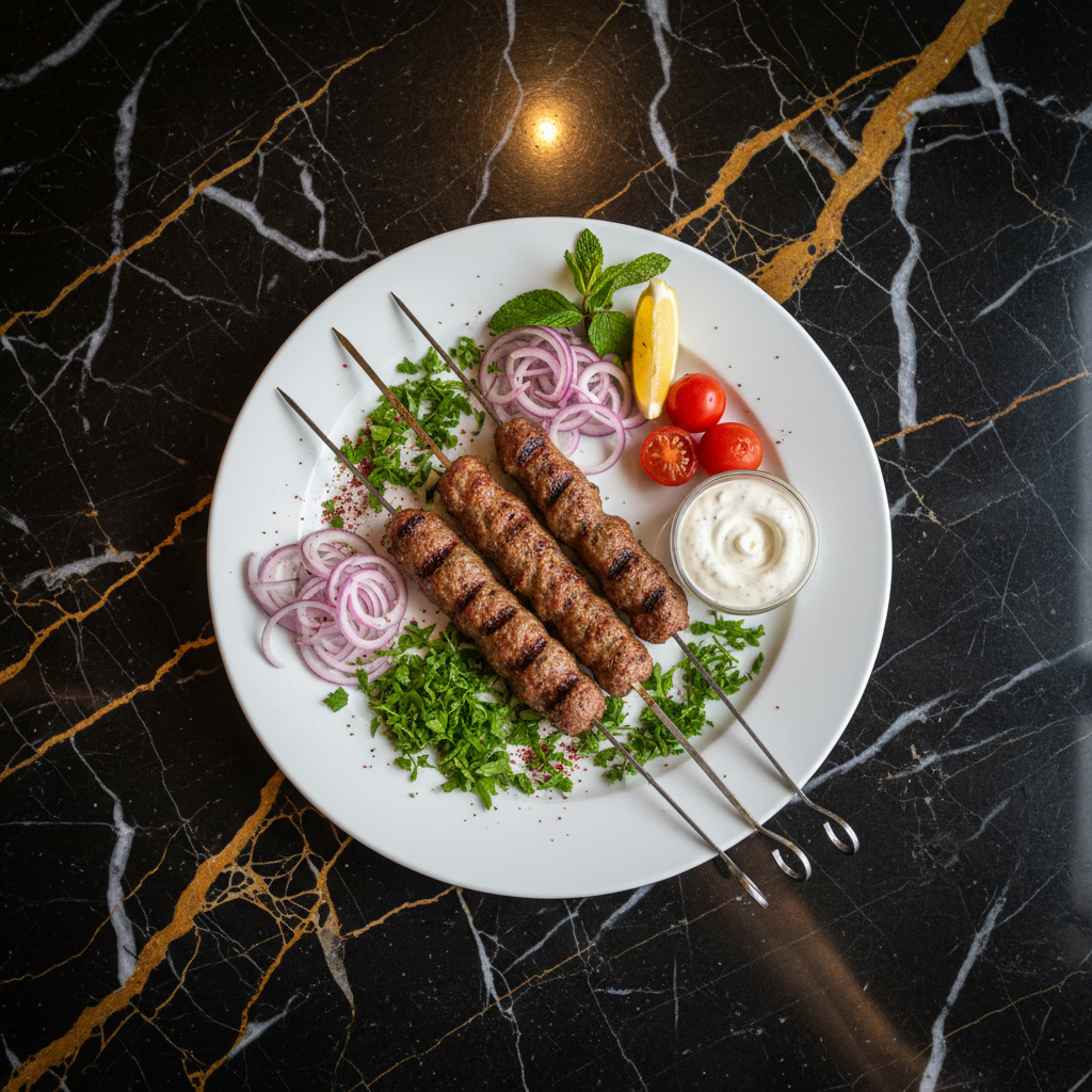 Kafta Meshwi is a quintessential Lebanese dish featuring seasoned ground meat molded onto flat skewers and grilled to perfection. It's a staple at any Middle Eastern barbecue, offering a flavorful and satisfying experience.