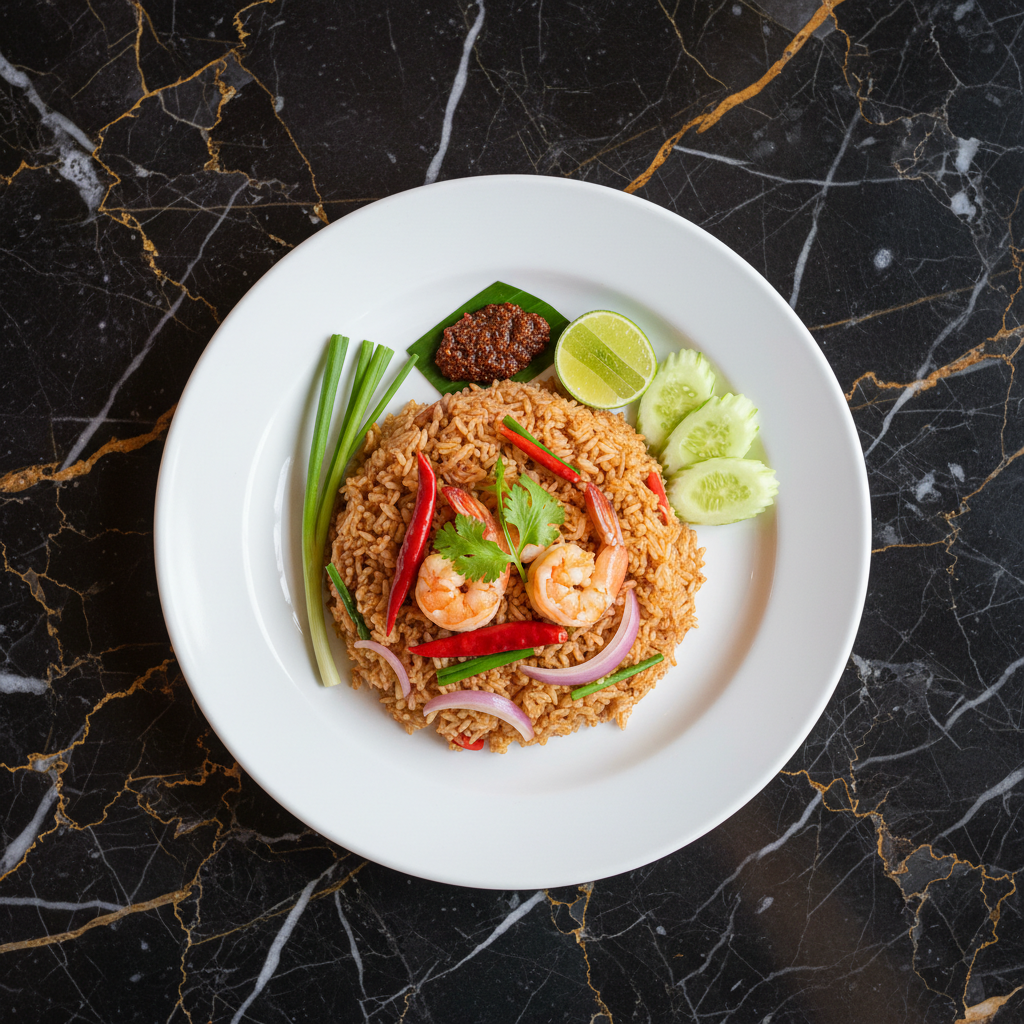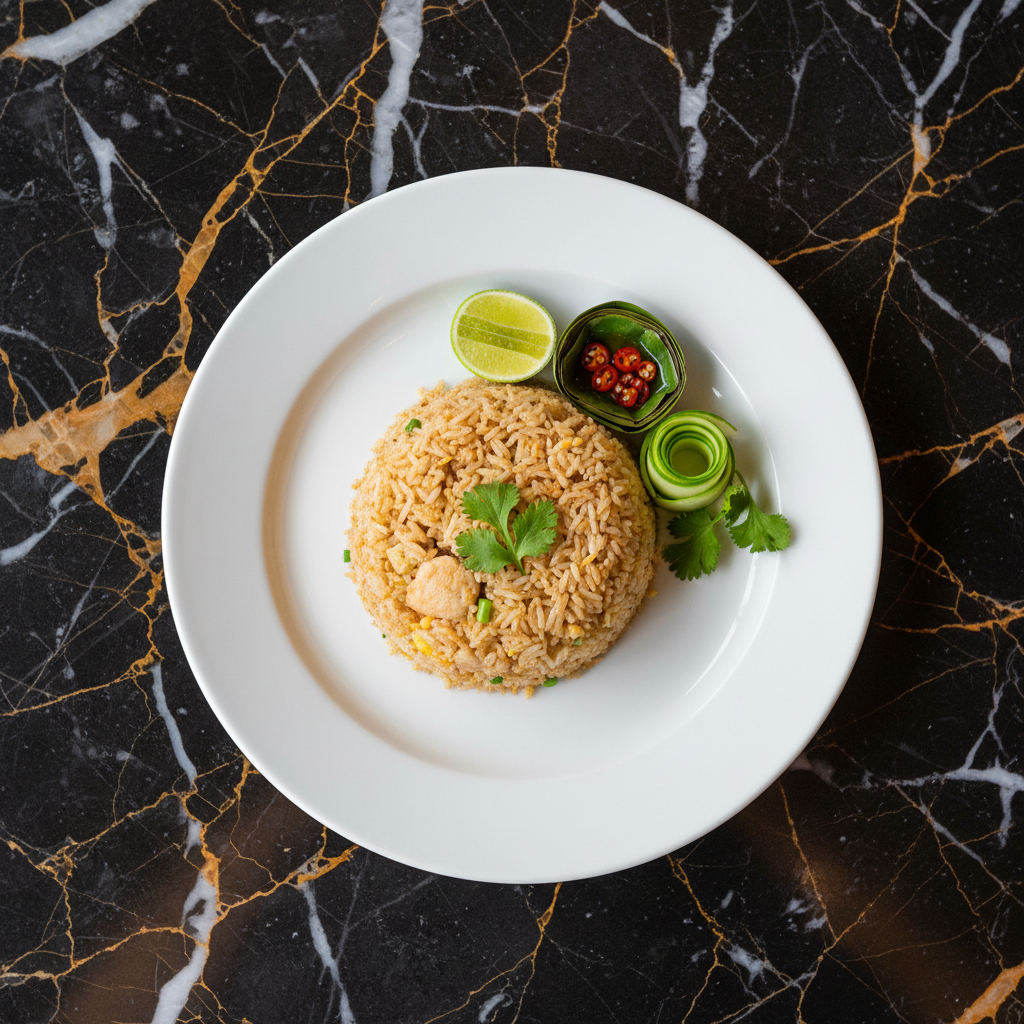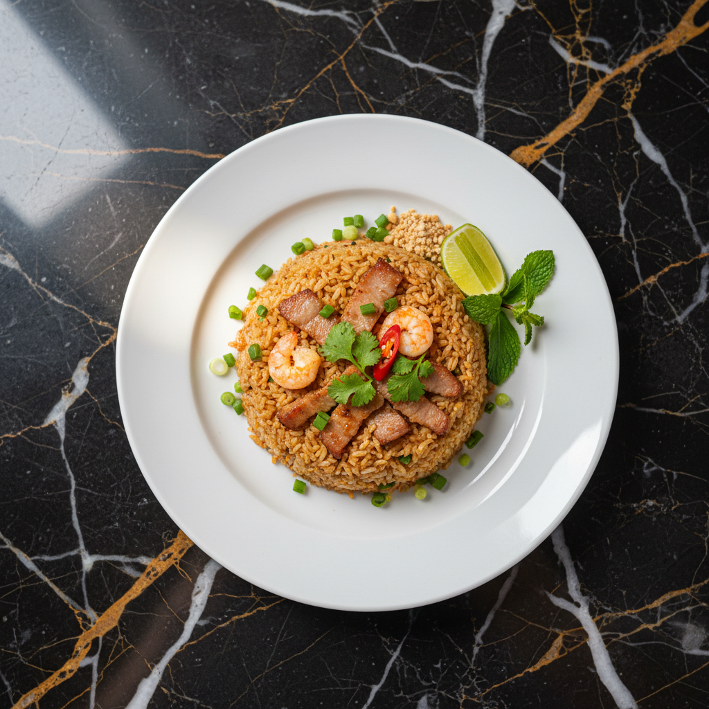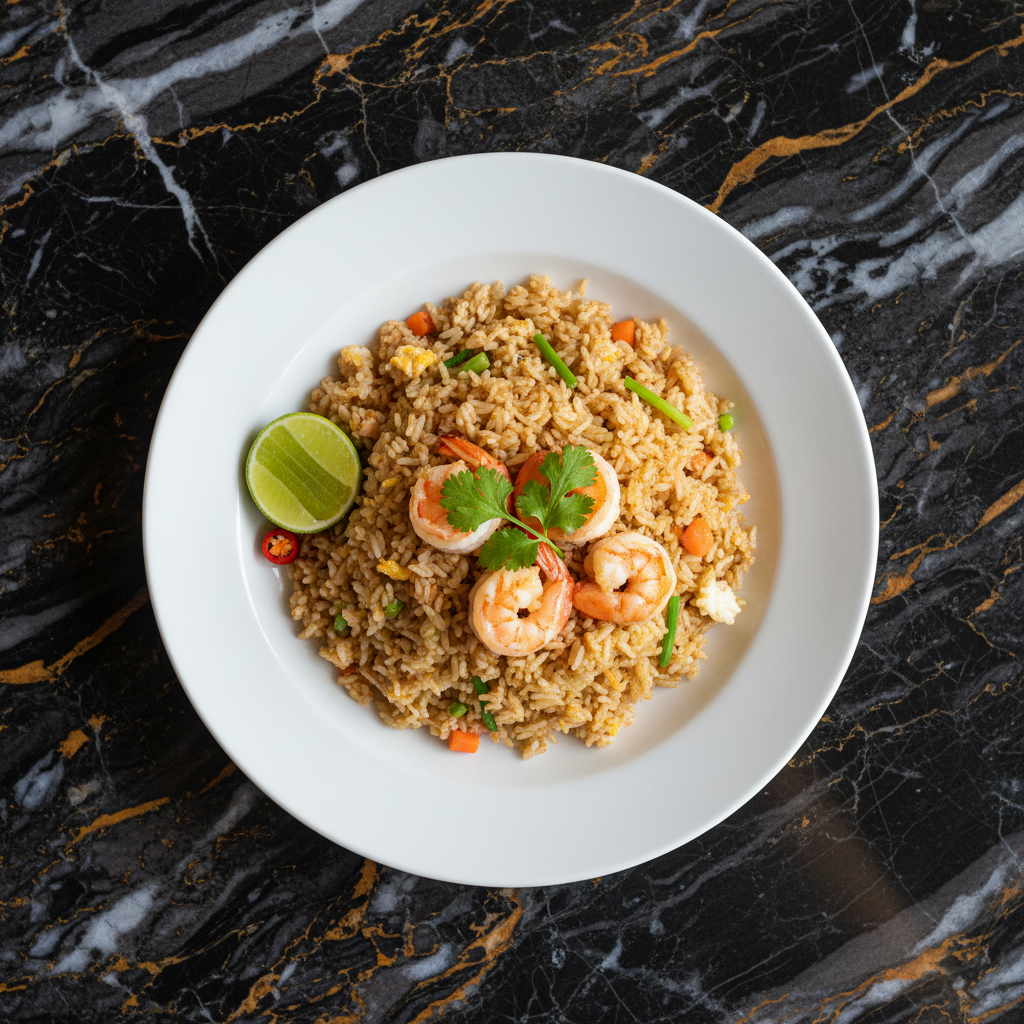 Authentic Thai fried rice featuring fragrant jasmine rice wok-fried with scrambled eggs, your choice of protein, crisp vegetables, and seasoned with savory fish sauce and a bright squeeze of lime. This dish is a staple of Thai street food.